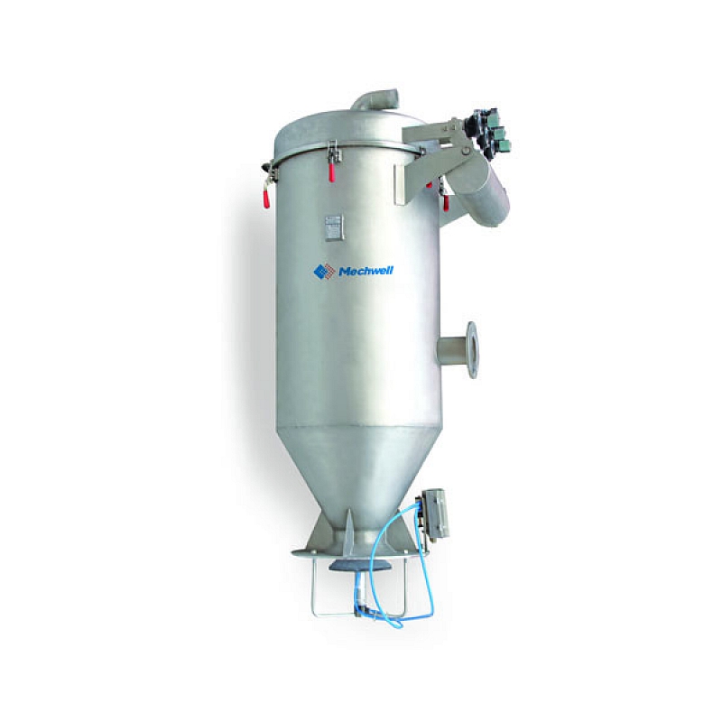 風(fēng)機吸引上料機罐使之形成負(fù)壓,吸引物料經(jīng)輸送管進入上料機罐,物料與空氣被濾芯分離,干凈空氣經(jīng)風(fēng)機排空,物料聚集到指定料位時從上料機下部排出。它是一種借助于真空吸力來傳送散裝物料的輸送備。